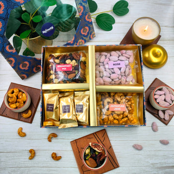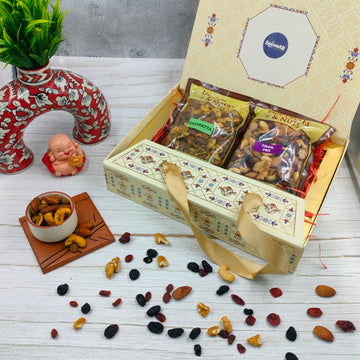 Delight your sibling with a collection of our finest treats: Tangy Italian Herb Almonds for those cozy movie nights, Peru Chilli Cashews that offer a sweet and spicy twist, and the indulgent Pan Mint Kishmish and Orange Truffle for a touch of sweetness. Beautifully packaged and reasonably priced, this gift is more than a snack it’s a heartfelt gesture of care and well-being. Celebrate Raksha Bandhan by sharing the joy of health and taste.